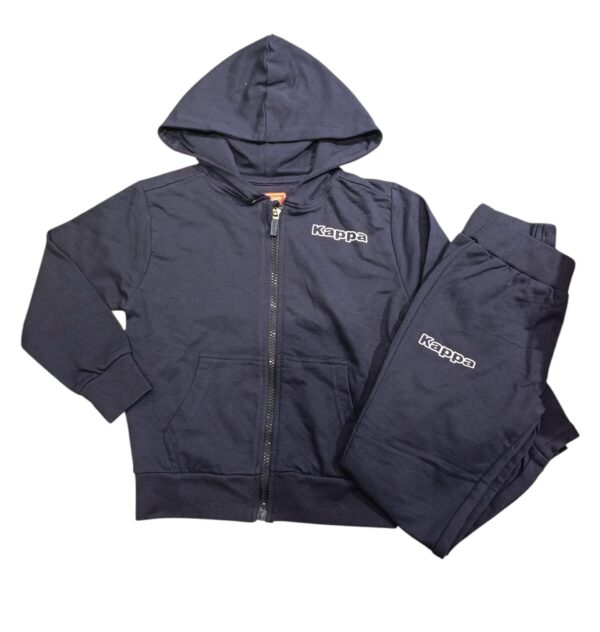 La felpa e i pantaloni presentano il classico logo Kappa stampato in bianco, un dettaglio che aggiunge un tocco sportivo e riconoscibile.