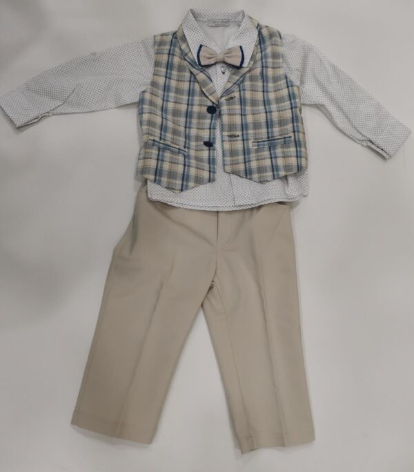 COMPLETO ELEGANTE CERIMONIA BIMBO NEONATO 4 PEZZI COMPOSTO DA GILET, CAMICIA, PAPILLON E PANTALONE.