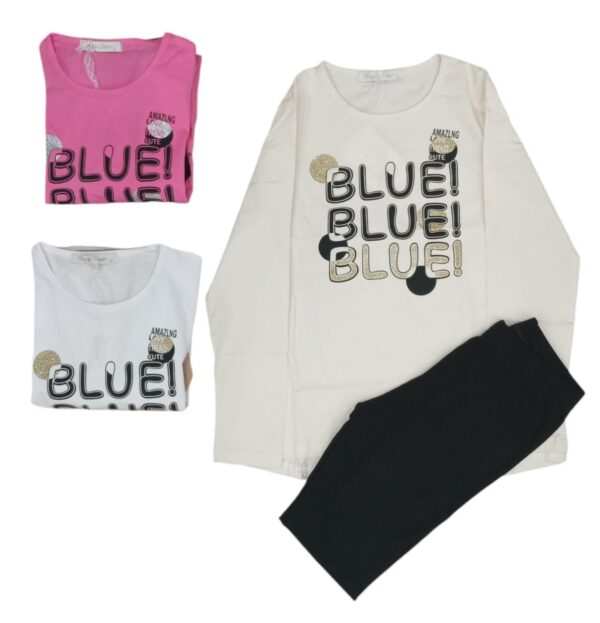 completo maximaglia manica lunga in cotone con simpatica stampa glitter, leggings a costine.