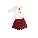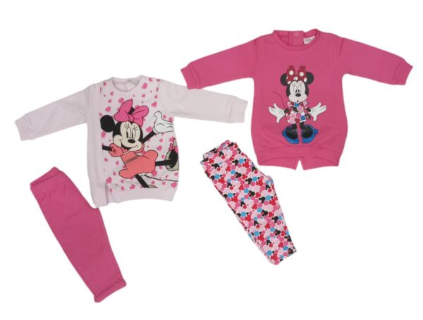 Completo 2 pezzi felpato neonata Disney.Il completo e’composto da:maglia felpata con apertura a bottoncini a pressione sul retro,stampa Minnie frontale ed elastico ai polsini ed in vita;pantaloni felpati con elastico in vita e piega alle caviglie.