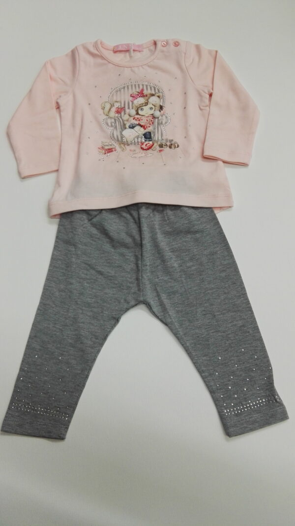 COMPLETO 21 PEZZI MAXI P. E LEGGINS GIRO COLLO CALDO COTONE MANICA LUNGA CON STAMPA BIMBA E APPLICAZIONE STRASS.