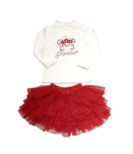 Il set presenmta una maglia in caldo cotone con gonna in tulle abbinata.