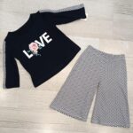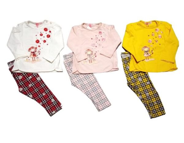 Il coordinato presenta una maglia a maniche lunghe con leggings abbinato.