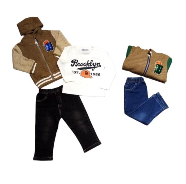 Il set si compone di una felpa in maglia, con maglia e pantalone abbinato.