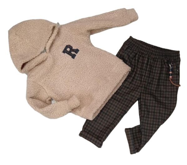 felpa teddy con cappuccio e pantalone fantasia quadri