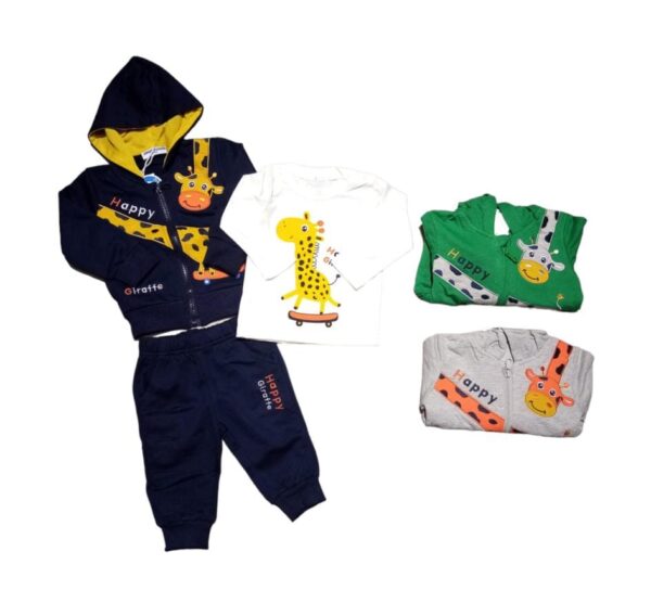 Il set si compone di felpa con pantalone e t-shirt a manica lunga abbinata.
