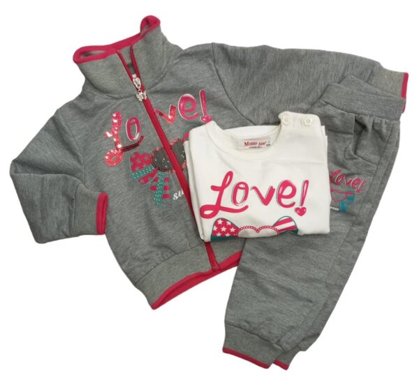 GIACCHETTINA SENZA CAPPUCCIO CON CHIUSURA ZIP,TASCE E SCRITTA “LOVE”FRONTALE,IN COTONE GARZATO