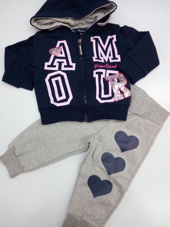 PANTALONE CON MOLLA FELPATO E GIACCHETTINA CON STAMPA E CAPPUCCIO