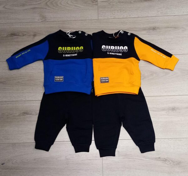 MAGLIA E PANTALONE IN COTONE GARZATI. MAGLIA A GIROCOLLO CON BOTTONCINI LATERALI, ELASTICO IN VITA E AI POLSINI. PANTALONE CON ELASTICO IN VITA E ALLE CAVIGLIE CON TASCA SUL RETRO.