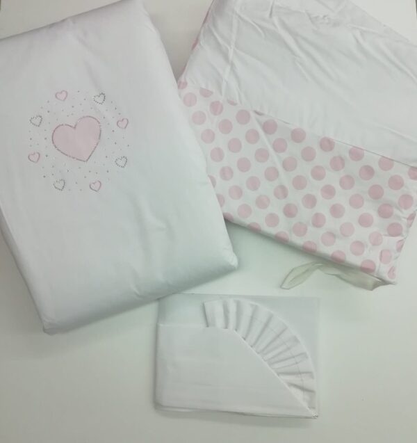 COORDINATO LETTINO 3 PEZZI COLORE BIANCO CON DECORO CUORE GRIGIO.