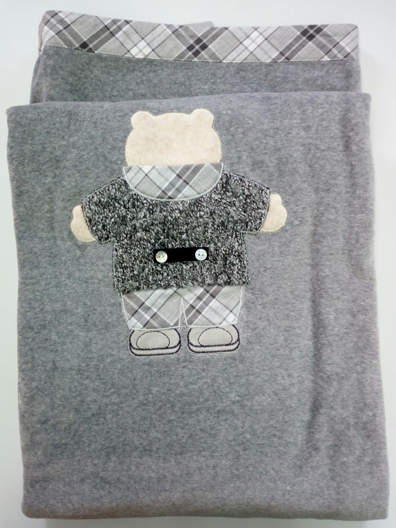 COPERTA CULLA/CARROZZINA GRIGIO QUADRI CON ORSETTO CINIGLIA