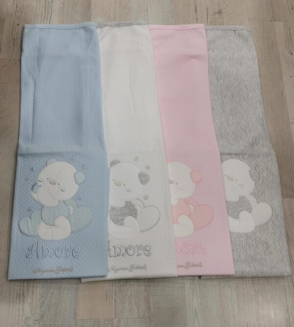 RICAMATA CON ORSETTO RICAMO AMORE ,TINTA UNITA,