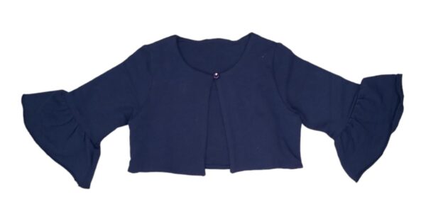 coprispalle bambina con piccolo strass sul bottone centrale e maniche a 3/4