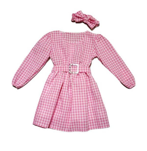 Costume di Carnevale ispirato all’iconica bambola Barbie con dettaglio di fascia per capelli abbinata.