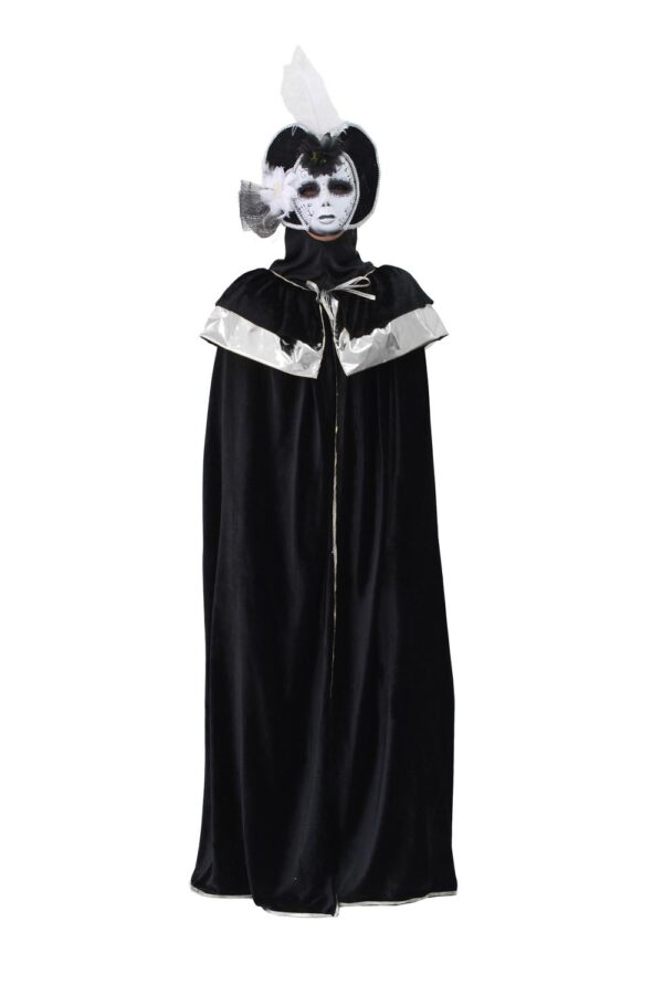 Il costume Domino Venezia nero è disponibile in taglia unica.Nel pratico scatolo 10x48x36 del costume da Domino venezia nero troverai i seguenti elementi: mantello, cappuccio e maschera. Il costume è realizzato in tessuto: ciniglia, crepo lame, maglina e sbiego lame.Costume perfetto per feste di Compleanno, Travestimenti, feste a tema, Cosplay, giochi di finzione, giochi di ruolo, Carnevale e sfilate di Carnevale.Materiale: tutte le parti 100% tessuti poliestere.Istruzione lavaggio: lavare a mano a bassa temperatura, lavare le parti separatamente, non strizzare, stirare a 110 gradi massimo a rovescio.MADY IN ITALY veneziano, maschere veneziane