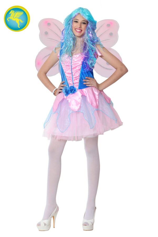 Il costume farfalla azzurra è disponibile in 3 taglie a partire da S fino a L.Nel pratico scatolo 8x48x36 del costume da Farfalla azzurra troverai i seguenti elementi: vestito, parrucca, calze e ali. Il costume è realizzato in ciniglia, raso, tulle, tulle operato e filo paillettes. farfalla, bloom, winks, musa, winx, flora, FANTASIAADULTO, offerta