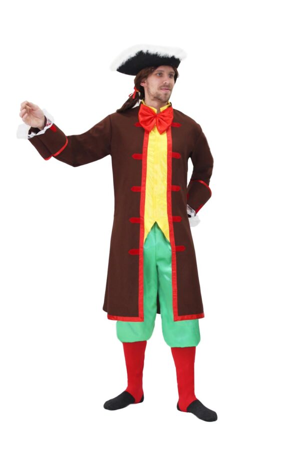 ll costume Gianduia è disponibile in 2 taglie a partire da M fino a L.Nel pratico scatolo 10x48x36 del vestito da Gianduia troverai i seguenti elementi: giacca, pantalone, scaldamuscoli, cappello e papillon. Il costume è realizzato in tessuto di raso.Gianduia è la maschera del Piemonte.Il suo nome deriva dalla locuzione Gioann dla doja, ovvero Giovanni del boccale. MASCHEREPOPOLARIADULTO, SLIDEMASCHEREPOPOLARI