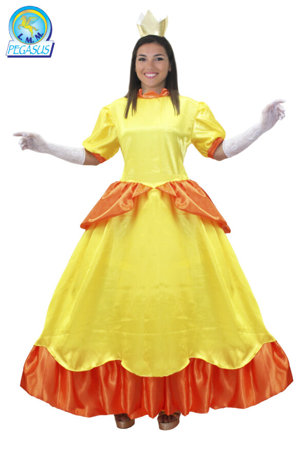 Il costume Principessa Gialla è disponibile in 3 taglie dalla S alla L.Nel pratico scatolo 8x48x36 del costume da Principessa GIALLA troverai i seguenti elementi: vestito con sottogonna con 2 cerchi, guanti merletto, corona in tessuto, tulle.Il costume è realizzato in raso, tulle, maglina, crespo lamè accoppiato.Costume perfetto per feste di Compleanno, Travestimenti, feste a tema, Cosplay, giochi di finzione, giochi di ruolo, Carnevale e sfilate di Carnevale.Materiale: tutte le parti 100% tessuti poliestere.Istruzione lavaggio: lavare a mano a bassa temperatura, lavare le parti separatamente, non strizzare, stirare a 110 gradi massimo a rovescio. CARTONE ANIMATO, FILM, GIOCO, BROS, MARIO, LUIGI, SUPER MARIO BROS , SUPER LUIGI BROS, WORLD, GALAXY, MARIA ,LUIGA ,PEACH, DAISY, PRINCIPESSA