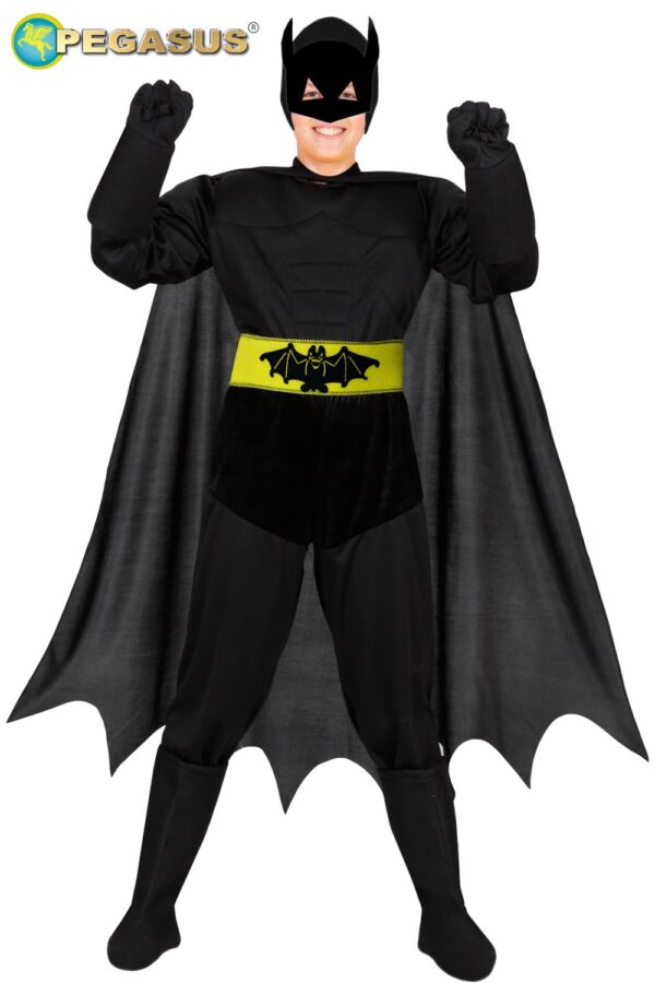 Il costume demone pipistrello (con muscoli) di pegasus è disponibile in 4 taglie a partire da S 5/6 ANNI fino a XL 10/11 ANNI.Confezionato in scatola, 8x29x38, all’interno sono presenti i seguenti elementi: casacca, pantalone, mantello con cappuccio e maschera, copristivali, guanti e cintura double face.Il costume è realizzato in tessuto: maglina e maglina accoppiata.Designer Italiano: casacca realizzata in tessuto maglina colore nero, chiusura con laccetti sul retro e muscoli e petto imbottiti. Pantalone in tessuto maglina colore nero con elastico in vita, soprascarpe modello stivali in tessuto maglina accoppiato nero, guanti in tessuto maglina nero, cintura in maglina accoppiato con pipistrello termoadesivo applicato sulla parte del davanti, infine troveremo in un unico pezzo mantello con copricapo e maschera in tessuto maglina nero.Adatto per feste di Compleanno, Travestimenti, feste a tema, Cosplay, giochi di finzione, giochi di ruolo, recite Carnevale e sfilate di Carnevale.Avvertenze: indossare sotto visione di un adulto.Istruzione lavaggio: lavare a mano a bassa temperatura, lavare le parti separatamente, non strizzare, stirare a 110 gradi massimo a rovescio. BATMAN, BAT, FUORICATALOGO, SUPEREROIBAMBINI