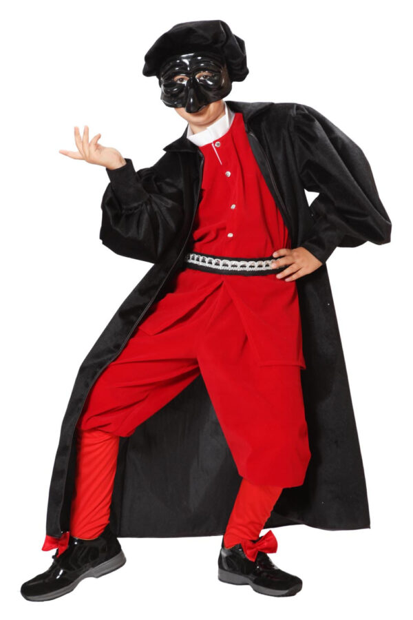 Il costume Pantalone è disponibile in 5 taglie a partire da S fino a XXL.Nel pratico scatolo 8x29x32 del vestito da Pantalone troverai i seguenti elementi: casacca, spolverino, pantalone, cintura, cappello e maschera.Il costume è realizzato in tessuto: raso e passamaneria lamè.Pantalone rappresenta un ricco mercante veneziano, burbero e avaro. POPOLARE, POPOLARI, MASCHEREPOPOLARIBAMBINO, SLIDEMASCHEREPOPOLARI