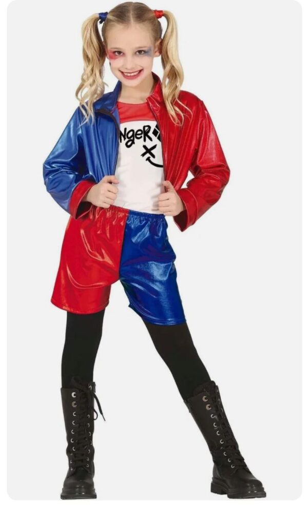 un’ottima scelta per la tua festa in maschera a tema fantasyQuesto stupendo costume ispirato ad Harley Quinn,è realizzato in poliestere e conforme agli standard di sicurezzaInclude giubbotto ,t-shirt e calzoncini