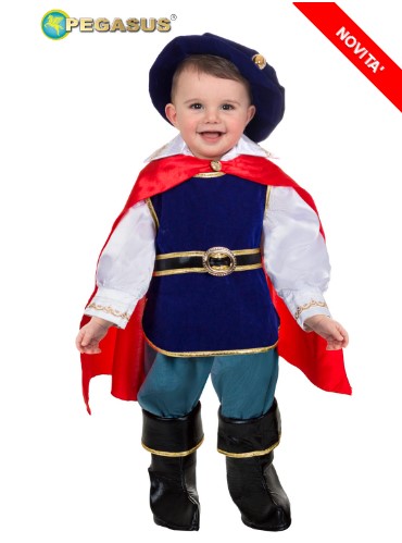 Il costume da Principe delle fiabe prima infanzia è disponibile in 4 taglie a partire da 10/12 mesi fino a 25/36 mesi.