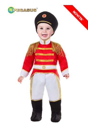Il costume da Soldatino (schiaccianoci) è disponibile in 4 taglie a partire da 10/12 mesi fino a 25/36 mesi.
