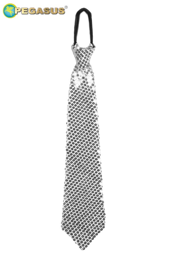 Cravatta Paillettes Argento Accessorio Di Carnevale