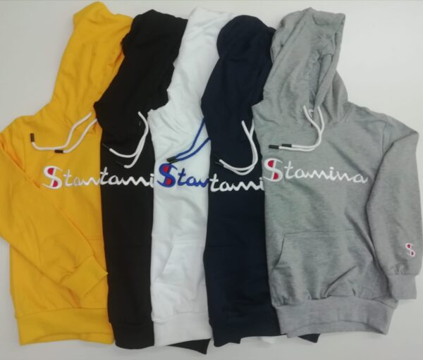 FELPA BASIC IN COTONE GARZATO CON CAPPUCCIO E TASCHE ANTERIORI.