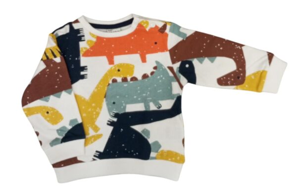 Felpa neonato Losan adatta per la stagione invernale.Si presenta con scollatura a giro,apertura con bottoncini a pressione su spalla laterale e fantasia dinosauri.