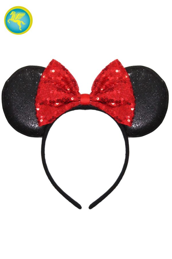 Il frontino con orecchie topoletta è rivestito da tessuto glitterato nero, con fiocco in paillettes rosse.Accessorio perfetto per feste di Compleanno, Travestimenti, feste a tema, Cosplay, giochi di finzione, giochi di ruolo, Carnevale e sfilate di Carnevale.Materiale: tutte le parti 100% tessuti poliestere.Taglia unica. TOPOLINA, TOPOLINO, TOPO, CERCHIETTO