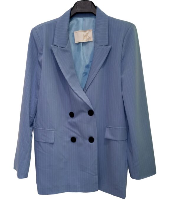 Giacca da donna con bottoni gessata azzurra .