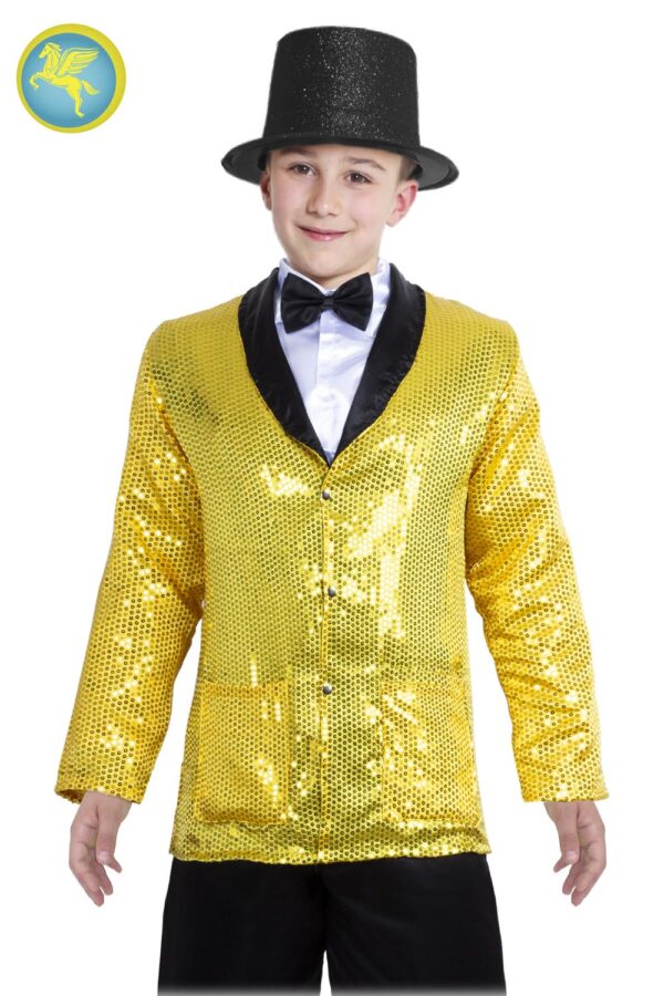 La giacca paillettes oro ? disponibile in taglia unica ed ? adatta per aggiungere un tocco di fantasia al vostro costume. PAILLETTES1, PRESENTATORE, FRACK, SPETTACOLO, capodanno