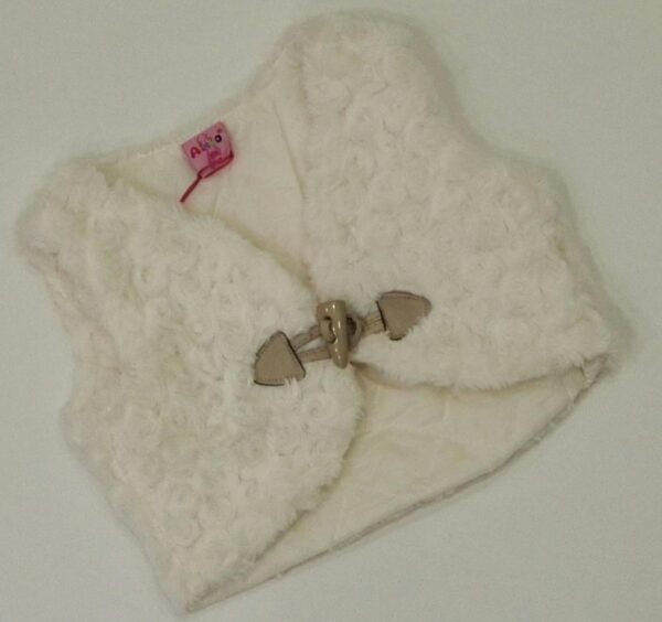 GILET DI PELLICCIA PANNA CON CAPPUCCIO E SIMPATICISSIME ORECCHIE.