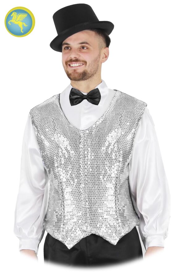 Gilet Paillettes Argento Accessorio Di Carnevale