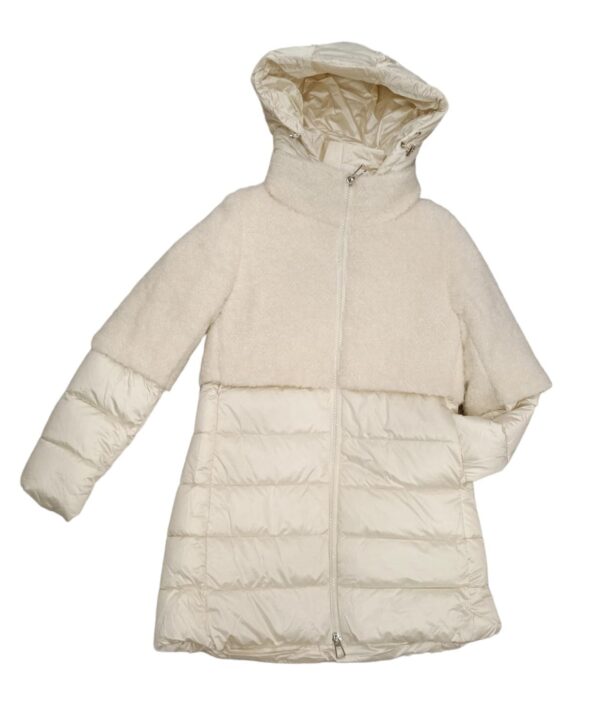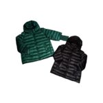 Il capo, in tinta unita, presenta un’apertura con zip, con cappuccuccio regolabile e rimovibile.