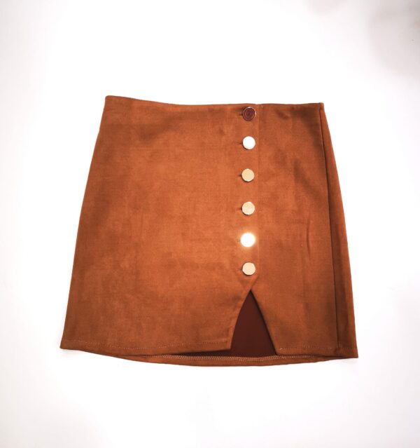 GONNA DONNA CORTA SCAMOSCIATA CON CHIUSURA FRONTALE CON BOTTONI DORATI.