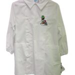 Il capo presenta un colletto bianco rimovibile e polsini elasticizzati.