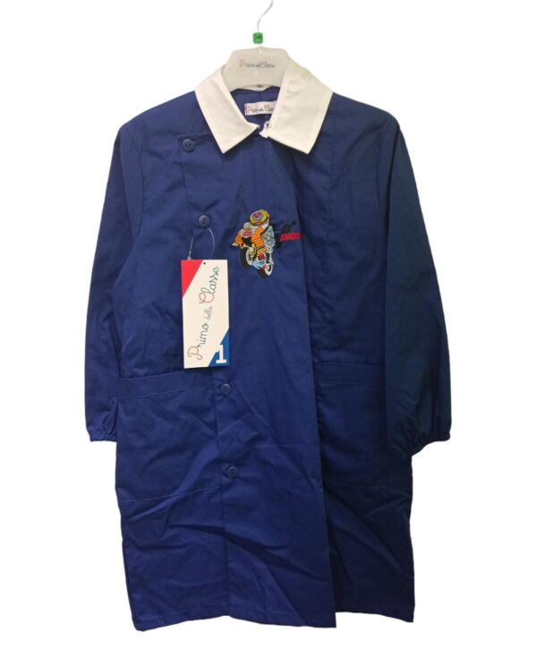 Grembiule per la scuola elementare da bambino firmato “Primo della classe”.