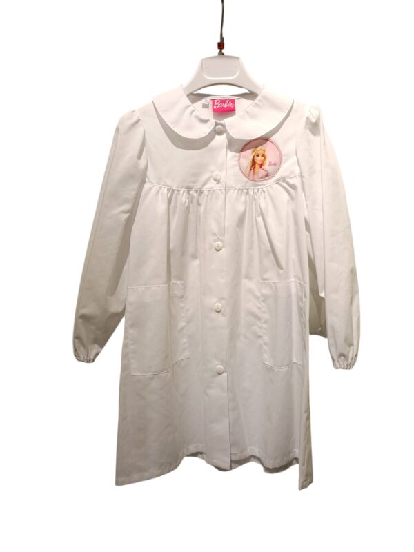 GREMBIULE BIANCO BIMBA CON TEMA BARBIE CON BOTTONI E DISEGNO PER BAMBINA
