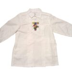Il capo presenta un colletto bianco a punta e polsini elasticizzati.