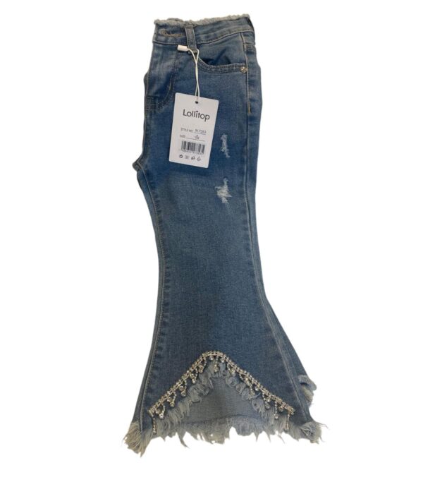 JEANS LOLLITOP BAMBINA A ZAMPA CON STRAPPI E STRASS IN COTONE