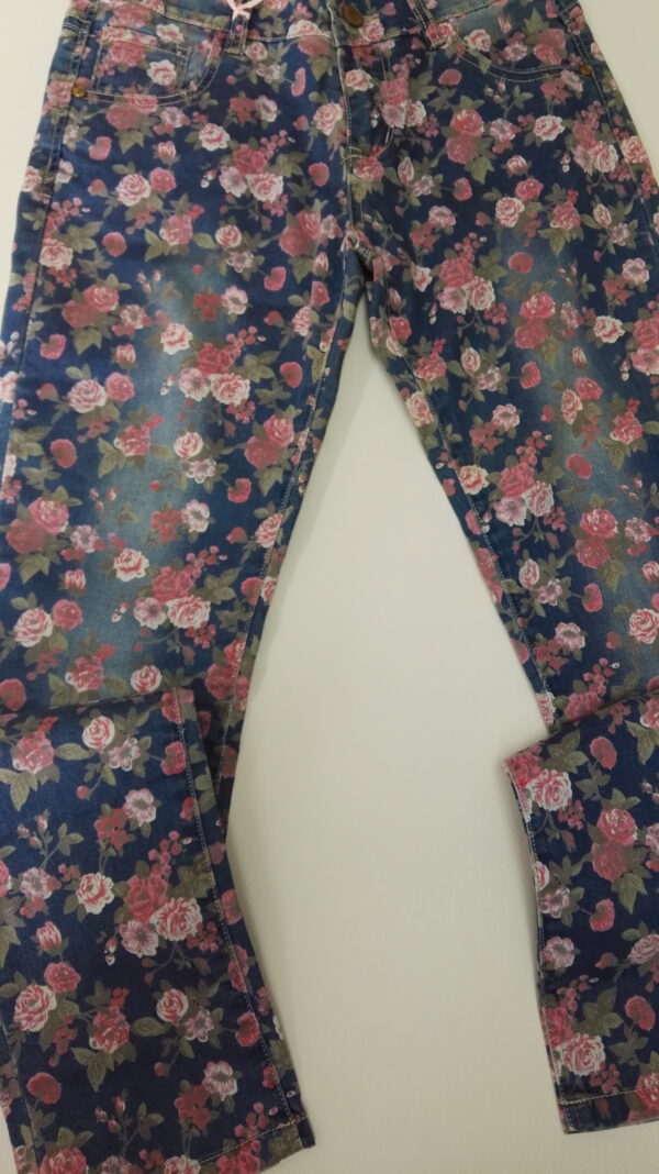 JEANS LUNGHI BIMBA A FANTASIA FLOREALE DI ROSE.