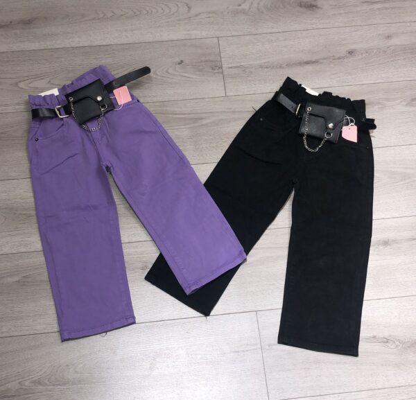 JEANS BIMBA,MODELLO ELASTICIZZATO,LARGO,CON ELASTICO IN VITA E PASSANTI PER CINTA,CON CINTA E BORSELLINO COORDINATO.