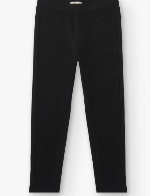 Leggings da bambina in nero, realizzati in tessuto elastico che offre grande comfort e libertà di movimento. Questo modello include dettagli di tasche simulate sul davanti, fornendo un ulteriore tocco di stile. L’elastico in vita assicura una vestibilità aderente e confortevole, rendendoli un capo essenziale e versatile da abbinare a qualsiasi outfit. Appartiene alla collezione Basics Girl