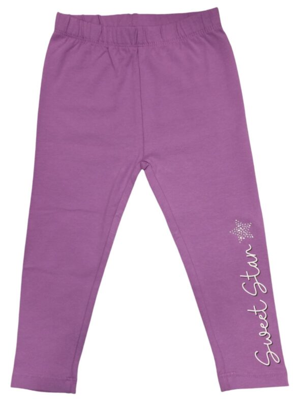 Leggings lungo bambina IDO.Si presenta a tinta unita con stampa scritta su gamba sinistra e dettaglio stella gitterata.