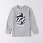 Maglietta per bambino iDO da 9 mesi a 8 anni realizzata in jersey 100% cotone. Il modello presenta apertura sulla spalla con bottoni a pressione fino alla taglia 3 anni, polsini sulle maniche e fantasia tinta unita con stampa frontale.
