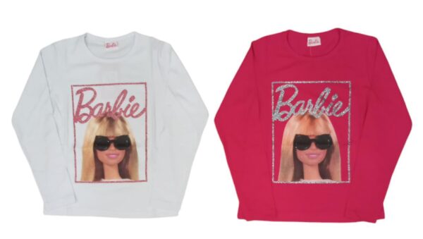 T-shirt in cotone bambina Barbie.Si presenta con scollatura a giro e stampa Barbie glitterata frontale.