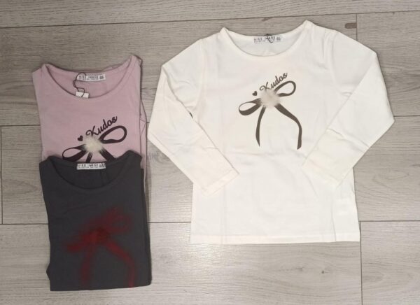 maglia bimba con stampa e ponpon, disponobile in tre varianti: bianco, nera e rosa