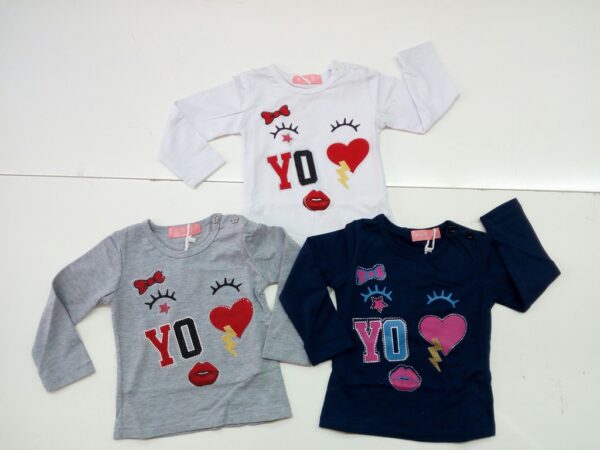 MAGLIA BIMBA GIROCOLLO CON CUORI E STRASS.